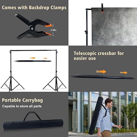 - User-Friendly Design: The simple and practical backdrop clips provide users with a more convenient setup and adjustment experience. With its versatility and stability, our stand is the ideal choice for photographers, photography enthusiasts, and professional studios alike, meeting the diverse needs of different shooting projects.
