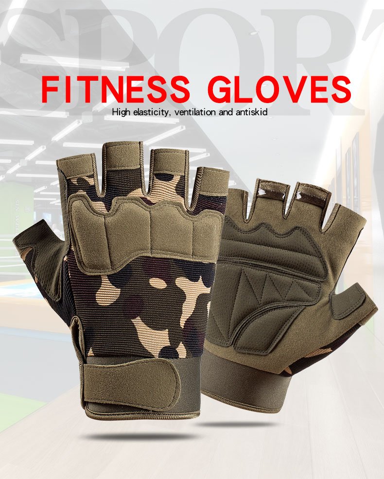 Pair Anti-slip Padded Half-finger Gloves Rock Climbing Hunting Portable Fingerless Glove Fitness Outdoor Sports Forest Camouflage M